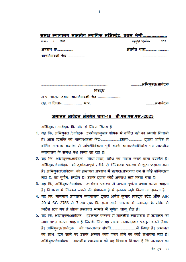 1. Bail Application under Section 48 BNSS, 2023