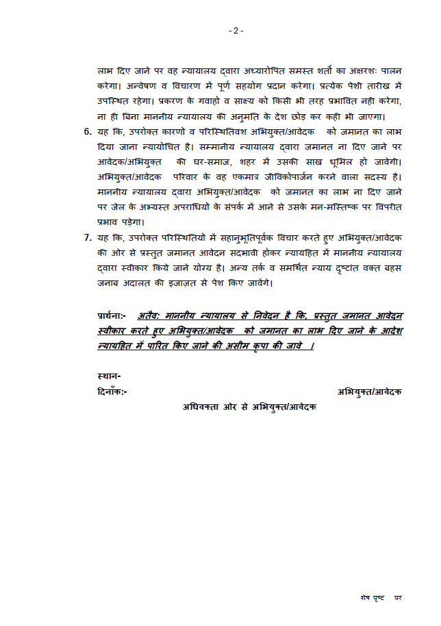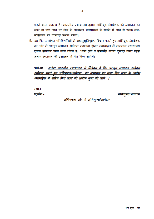 - Prayer Clause requesting grant of bail
